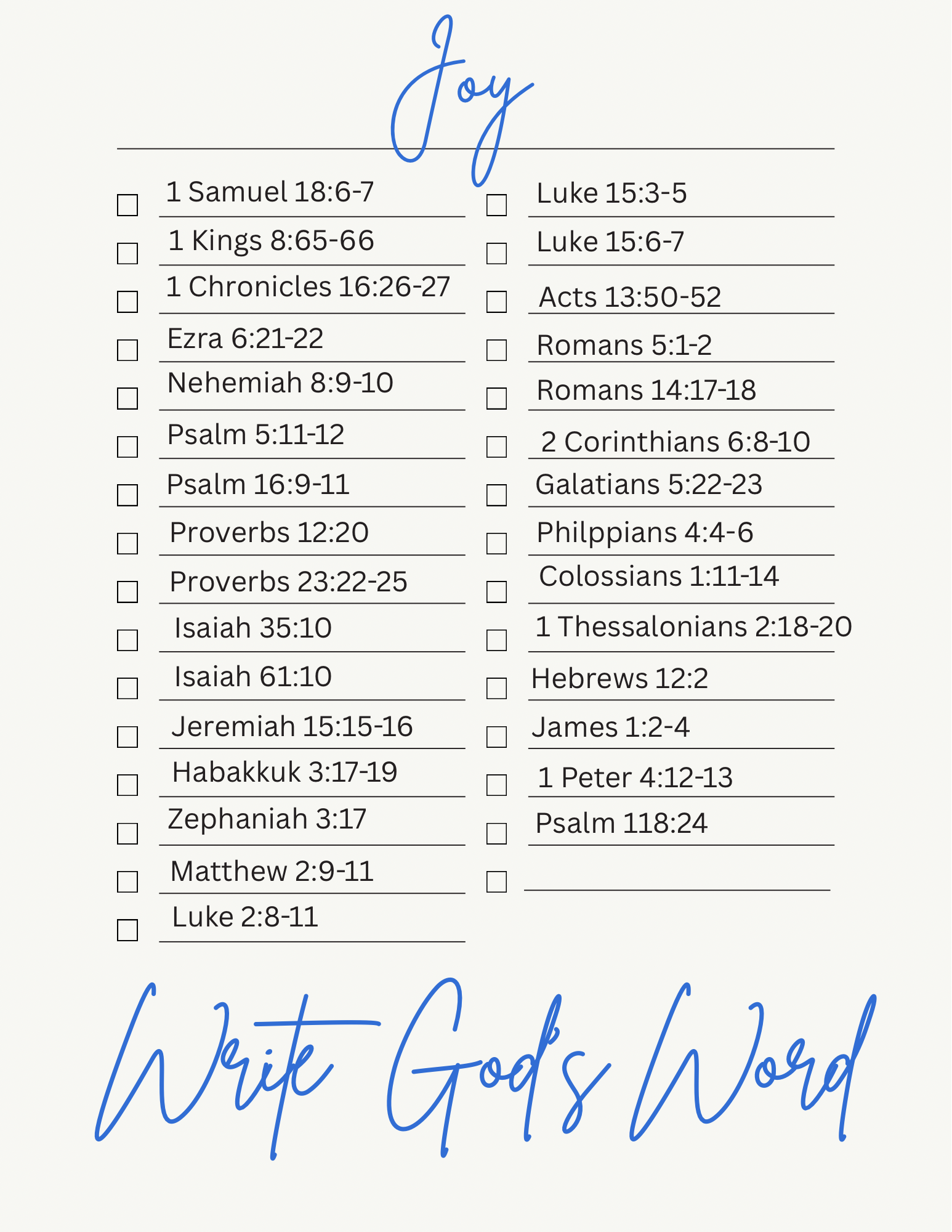Joy- March's writing list